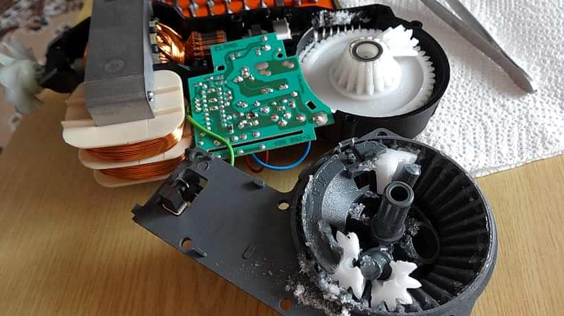 К необходимости ремонта электрической мясорубки может привести и сбой в работе присутствующих узлов управления. Во многих случаях, он представлен кнопочкой или каким-либо переключателем. В случае, если модель электроприбора поддерживает реверсивное вращение, то такой управляющий элемент является двухпозиционным. Помимо этого, почти все модели имеют редуктор - устройство, передающее силу двигателя к шнеку и приводящее последний в движение. В середине редуктора находятся шестеренки различных размеров. По причине повышенных нагрузок, у них могут слизываться зубцы, а это приведет к неправильной работе электроприбора. Чтобы после ремонта устройство работало без каких-либо сбоев, лучше принести мясорубку нашим мастерам.