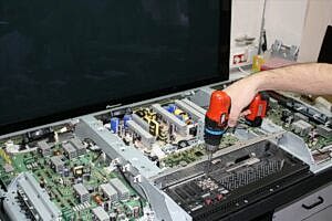 Наши специалисты располагают специальным диагностическим оборудованием, при помощи которого они за несколько минут могут выявить поврежденный компонент. Также, значительно ускоряет проведение ремонта телевизора наличие современных паяльных станций, которые позволяют проводить тончайшие Pin-Up по восстановлению микросхем. Вне зависимости от причины и вида поломки телевизора наши опытные специалисты способны очень быстро восстановить его идеальное рабочее состояние.